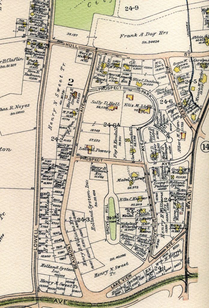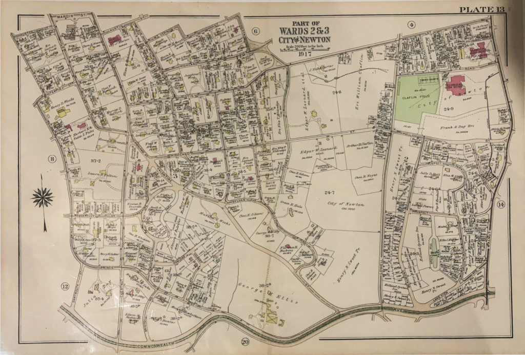 Here is a map from 1917. It differs significantly from the 1887 plan, with Comm Ave and Bulloghs pond coming into play and Murray Street named Lowell, and Morse named Dexter.