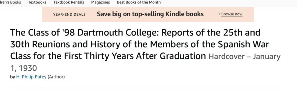 Phillip Patey wrote a book in 1930 on the Dartmouth College class of 1898 and their reunions.