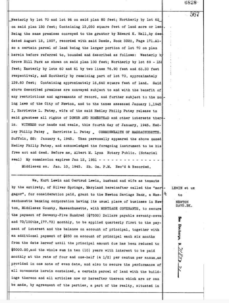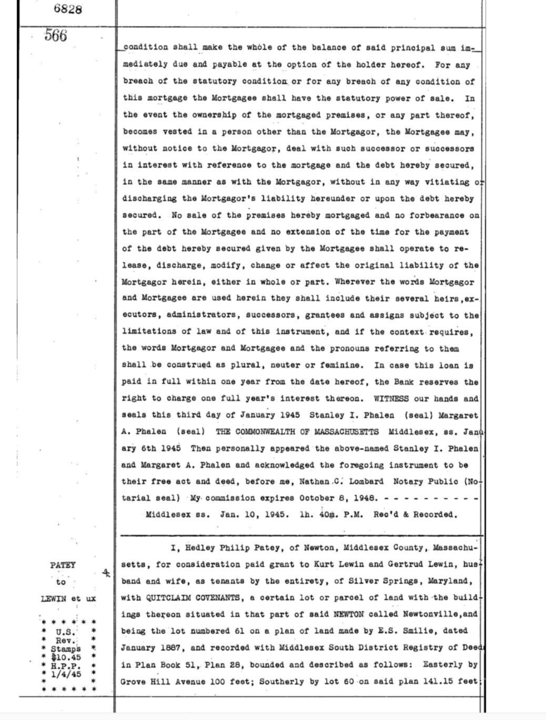 The Pateys sold the home to the Lewins on January 5th, 1945. Phillip Patey died in June of that year.