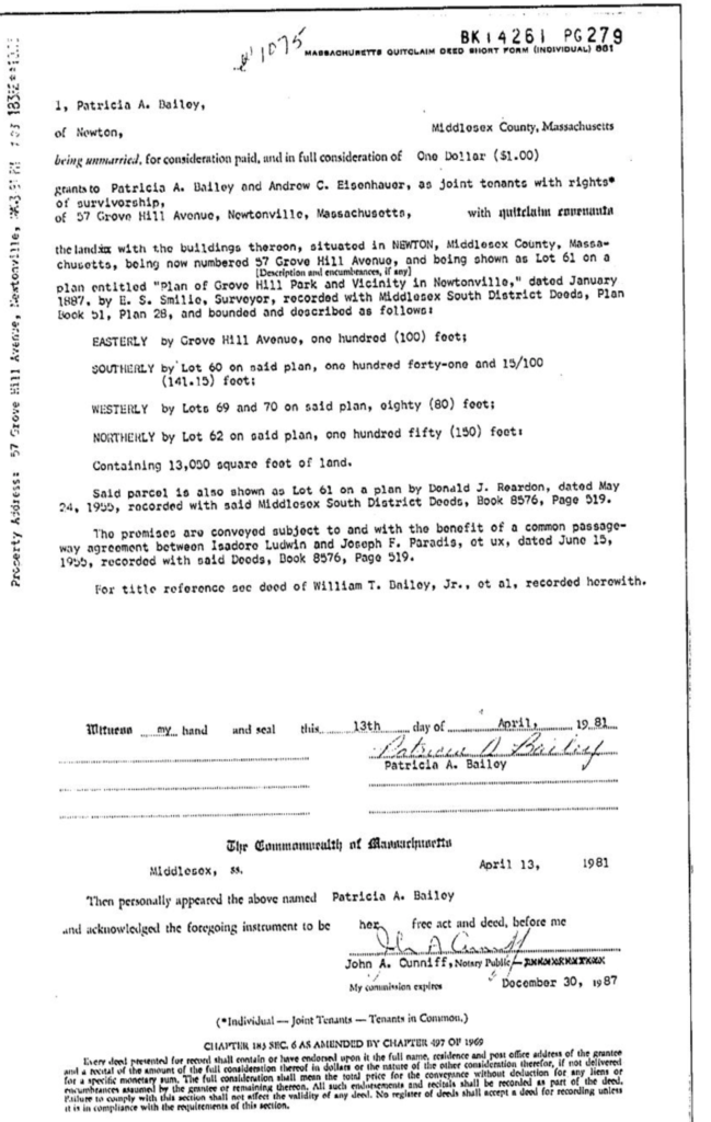 1981 Bailey to Bailey and Eisenhauer
